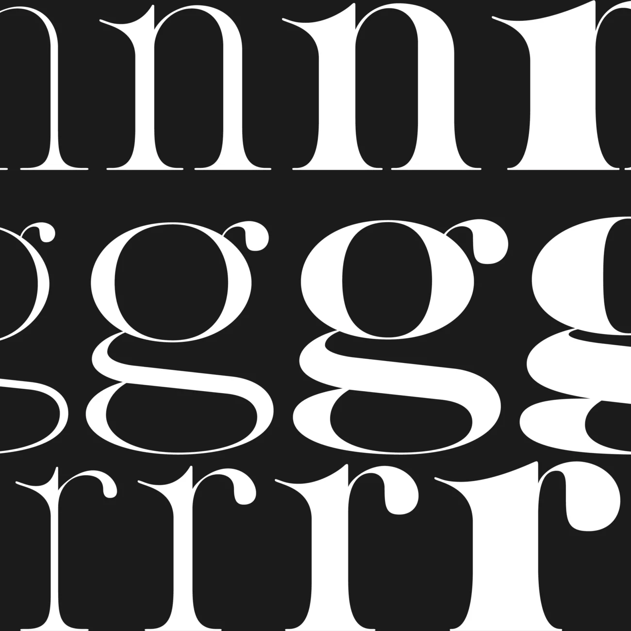 The fixed upstrokes also mean that as the weight increases, the contrasts are accentuated; creating a transformative quality between weights. Whilst the light style radiates a spindly, fragile, yet quietly lethal elegance through its stinging, pincer-like serifs, deep apertures and wide counters, the heavy weight finds its contrasts through strong, grounding stems and a tactile, inky, letterpress feel; alongside its exaggerated width variations within the basic alphabet.
