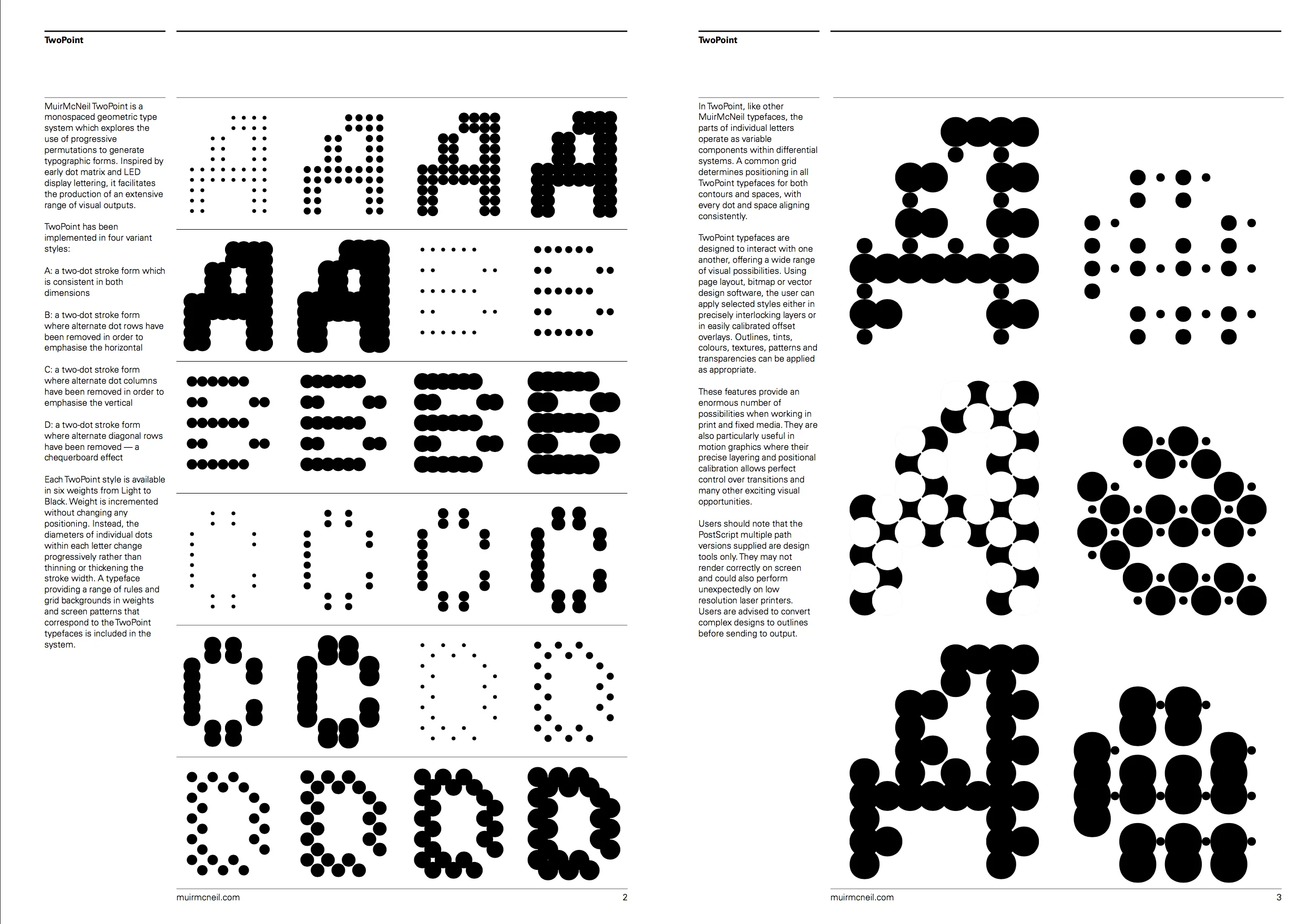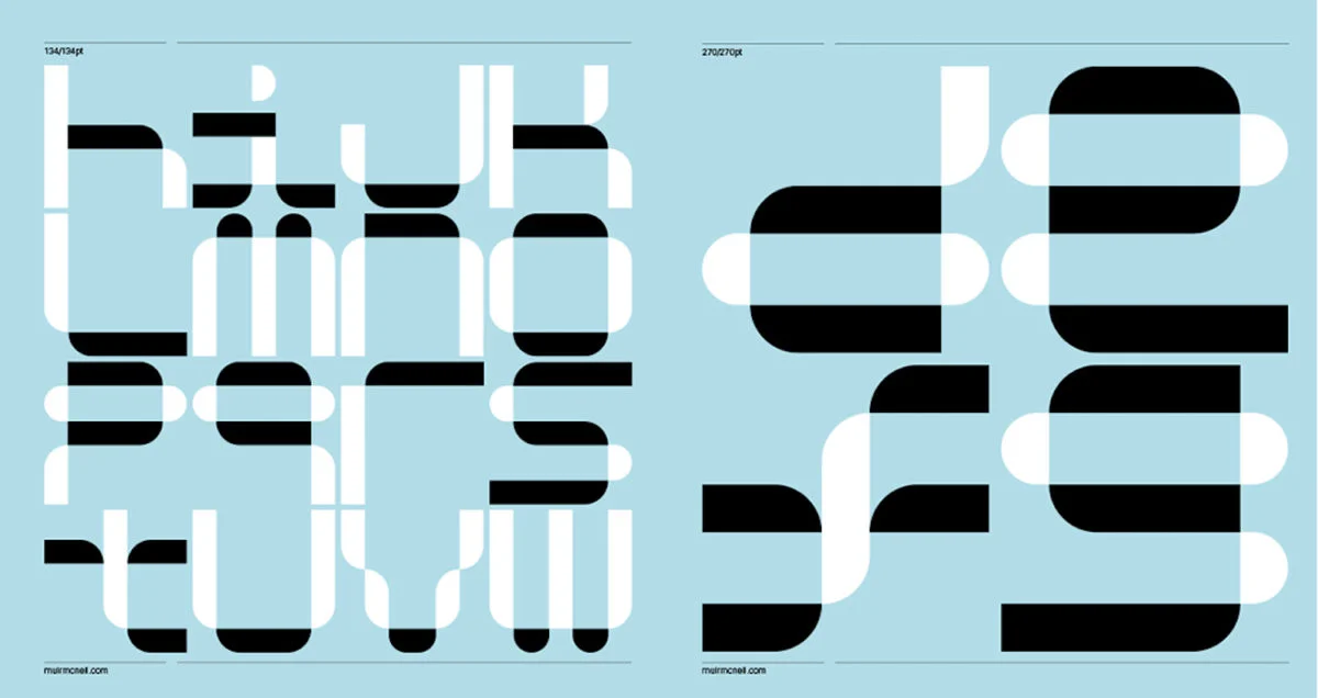 Since its formation in 2009, MuirMcNeil (@muirmcneil) has been occupied with the exploration of systematic/algorithmic methods in visual design; experimenting broadly across moving image, graphic design and, of course, type. Founded by Paul McNeil and Hamish Muir – both of whom have impressive and expansive backgrounds in type/graphic design – the foundry takes an innovative and unique approach to creating their own visual language, allowing method and process to pave the way.