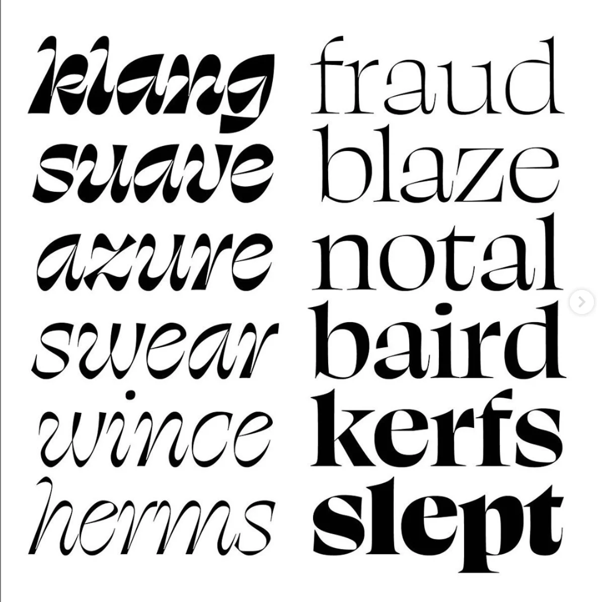 1. Limit the number of ideas. I once got some feedback from Jim Parkinson that has echoed in my brain for years. He was looking over a proof of a really early typeface of mine, and said, “I think this has, like, too many good ideas.” I immediately knew it made sense, but I was unclear on what defined an idea.An “idea” to me could be something as simple as high contrast Caslon, as in the case of Big Caslon by Matthew Carter. It could be “impossible geometry” as in the case of Macula by Jacques Le Bailly, released by Bold Monday. It could be “responsive, with minimal negative space” as in the case of Fit by @djrrb. A common affliction among students is that their enthusiasm gets the best of them, and they try to pack their typeface full of so many ideas, the concept gets muddied. And if you don’t have a concept, you have a misconception. I heard someone say that once.