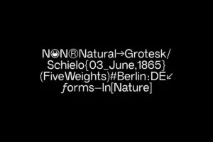 Jäger also takes influence from the typography craftsman, Johann Michael Fleischamann; whose work is reinterpreted through the ‘E,’ ‘L’ and ‘F.’ By beginning with hand-drawings, the typeface is intended to embody a tactile, artisanal feel and to connect the digitised finished outcome with the hand of the designer. The finished aesthetic feels connected also to traditional blackletter type, as well as organic shapes from nature; particularly in the hollowed out counter-space which interacts in negative space in ways which reflect oak tree leaves and the contours of wooden grain.