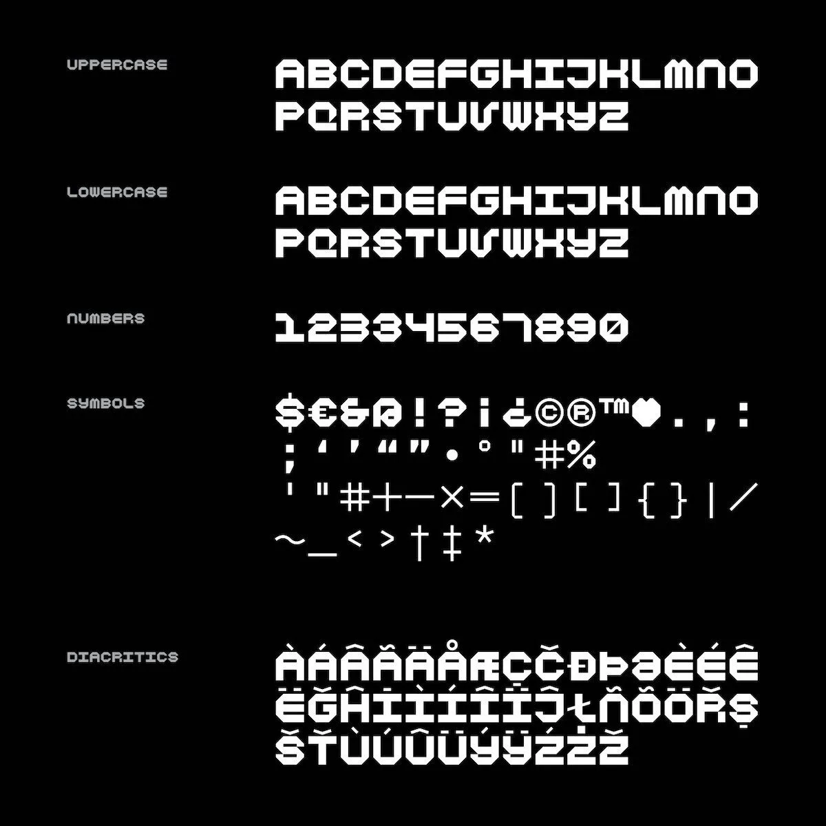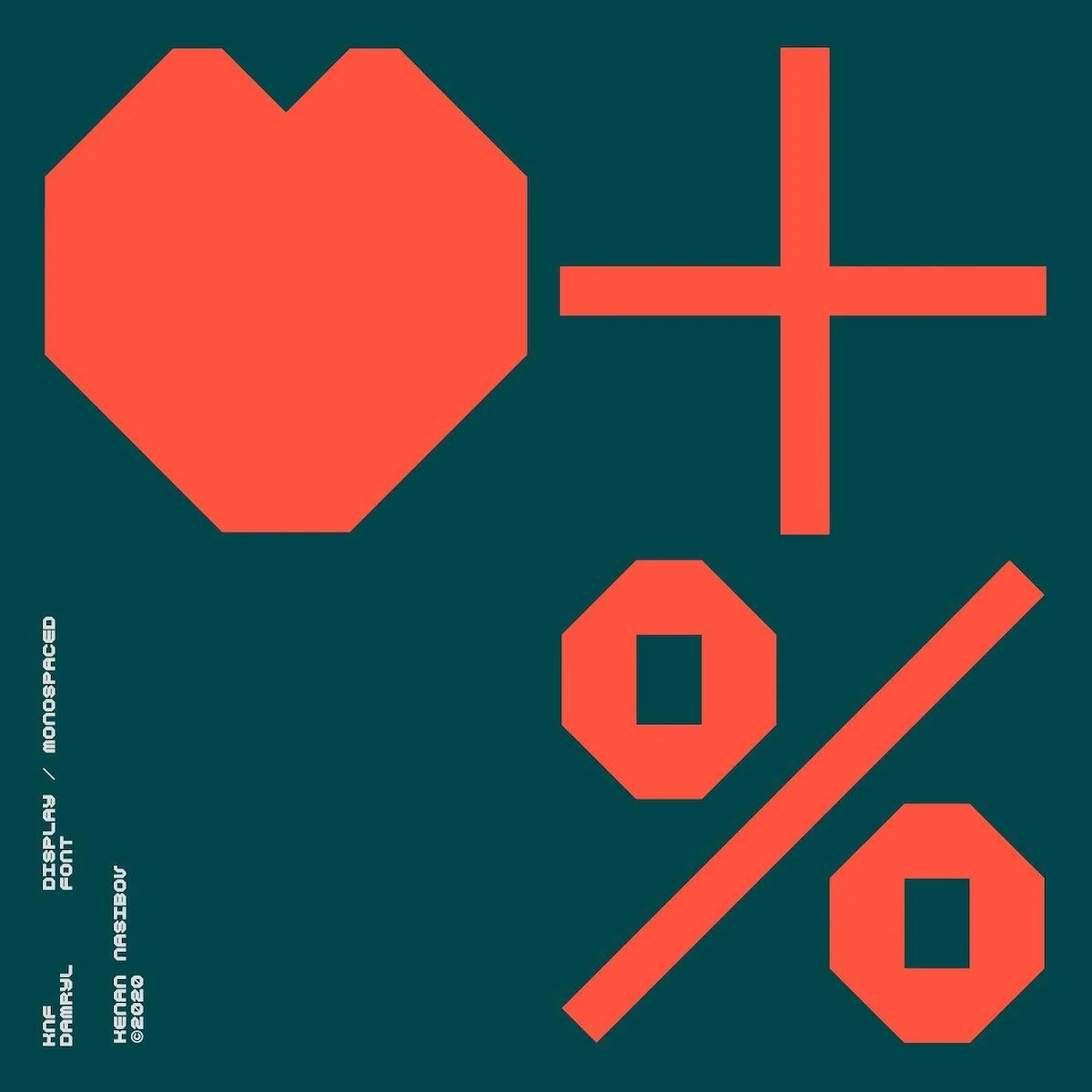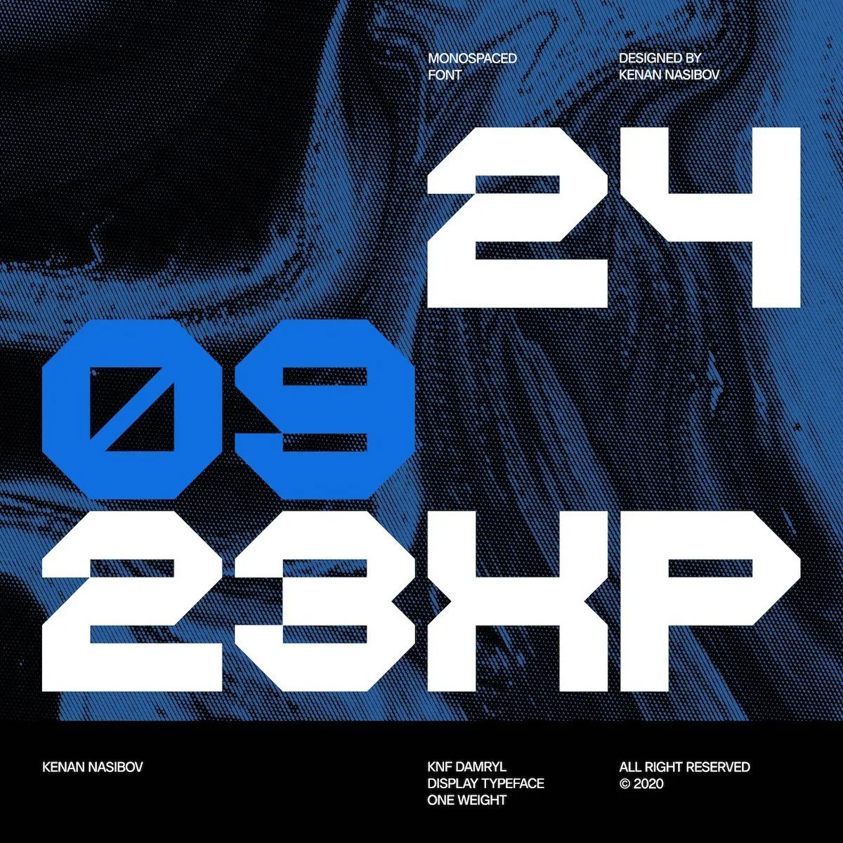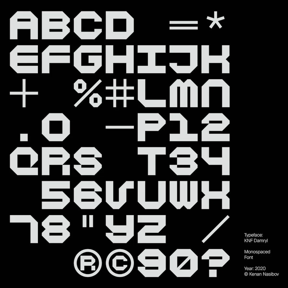 This monospaced display font has a bold, robust character and sits comfortably as a modern geometric sans serif. Created with inspiration from geometric and postmodernist typefaces such as Gridnik and FRAC, KNF Damryl packs maximum impact.