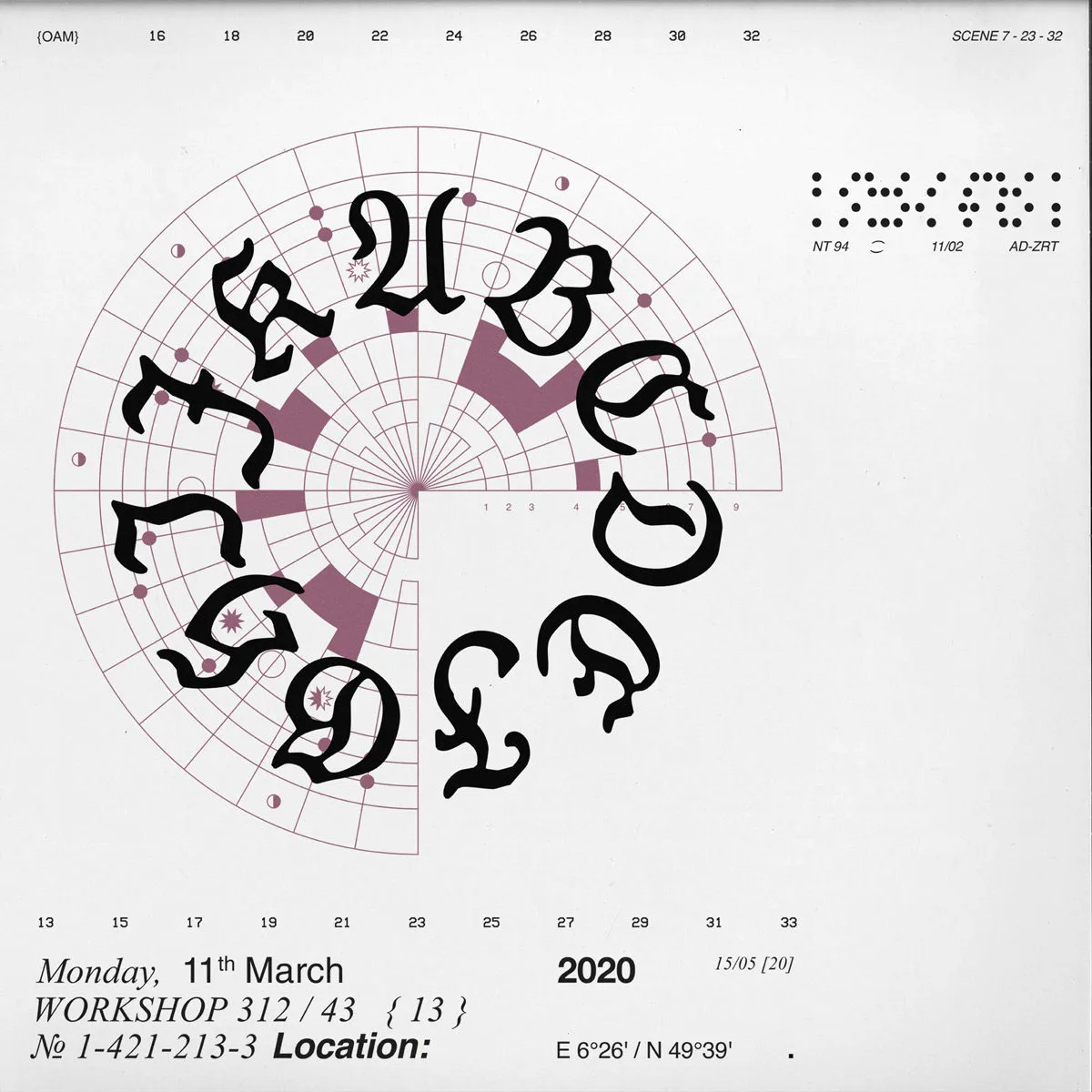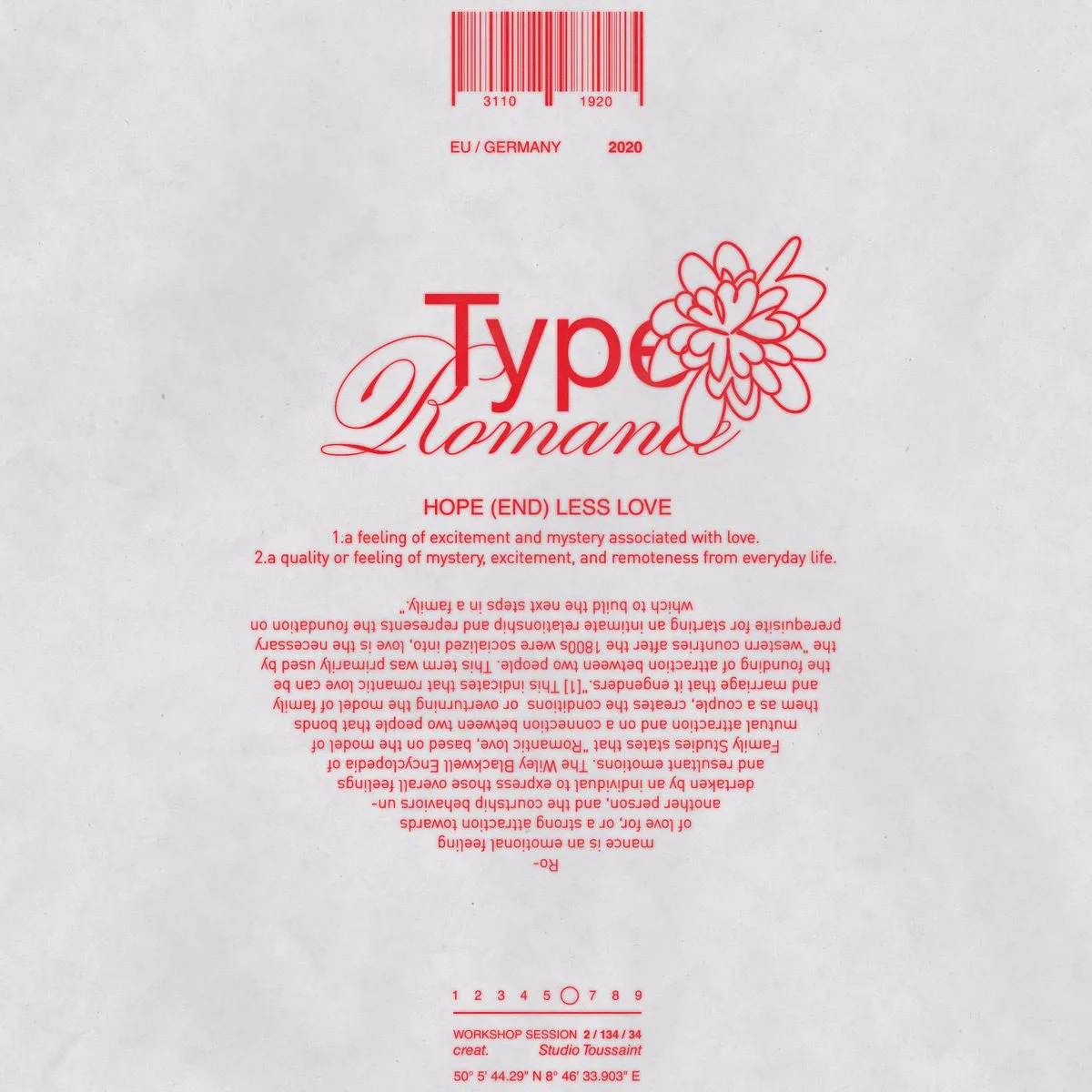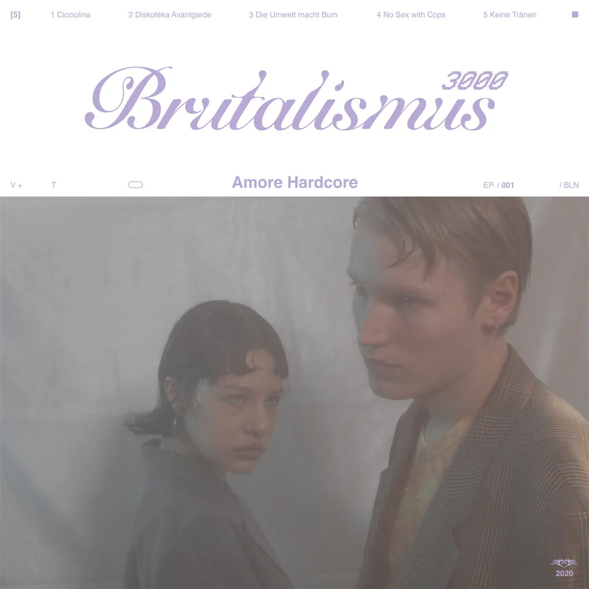 One of Nadine’s most recent endeavours includes a cover design for the music duo, Brutalismus 3000. ‘The typefaces reflect the music genre of the band, Nu Gabber mixed with Post Techno Punk. The romantic customised Brutalismus type clashes on the nostalgic bitmap 3000 font —softness on angularity, curves on edges’.