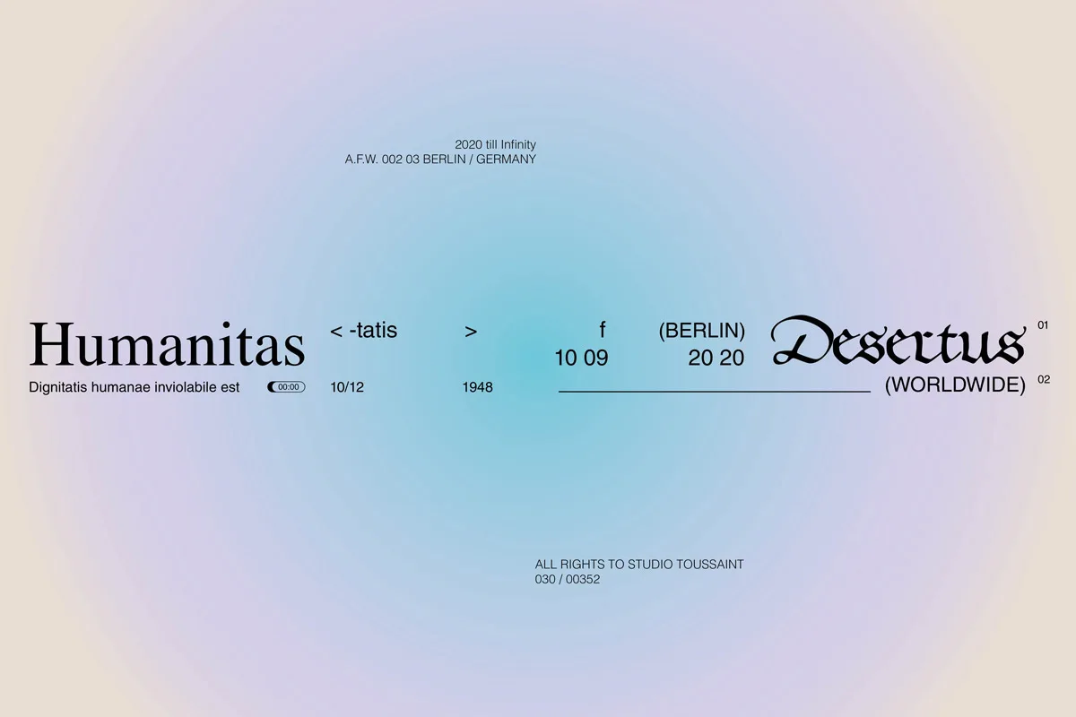 Originally from Luxembourg and based in Berlin, Nadine Toussaint works on brand identities, editorial, cover and poster designs; all with typography taking centre stage. As the driving force behind all of Nadine’s visual stories, her love for type flourished throughout her time at university. Studying communication design, Nadine began to work on projects for music labels, producers and clubs. ‘This is where my affection for co-working projects with other creatives began’, the designer expands.