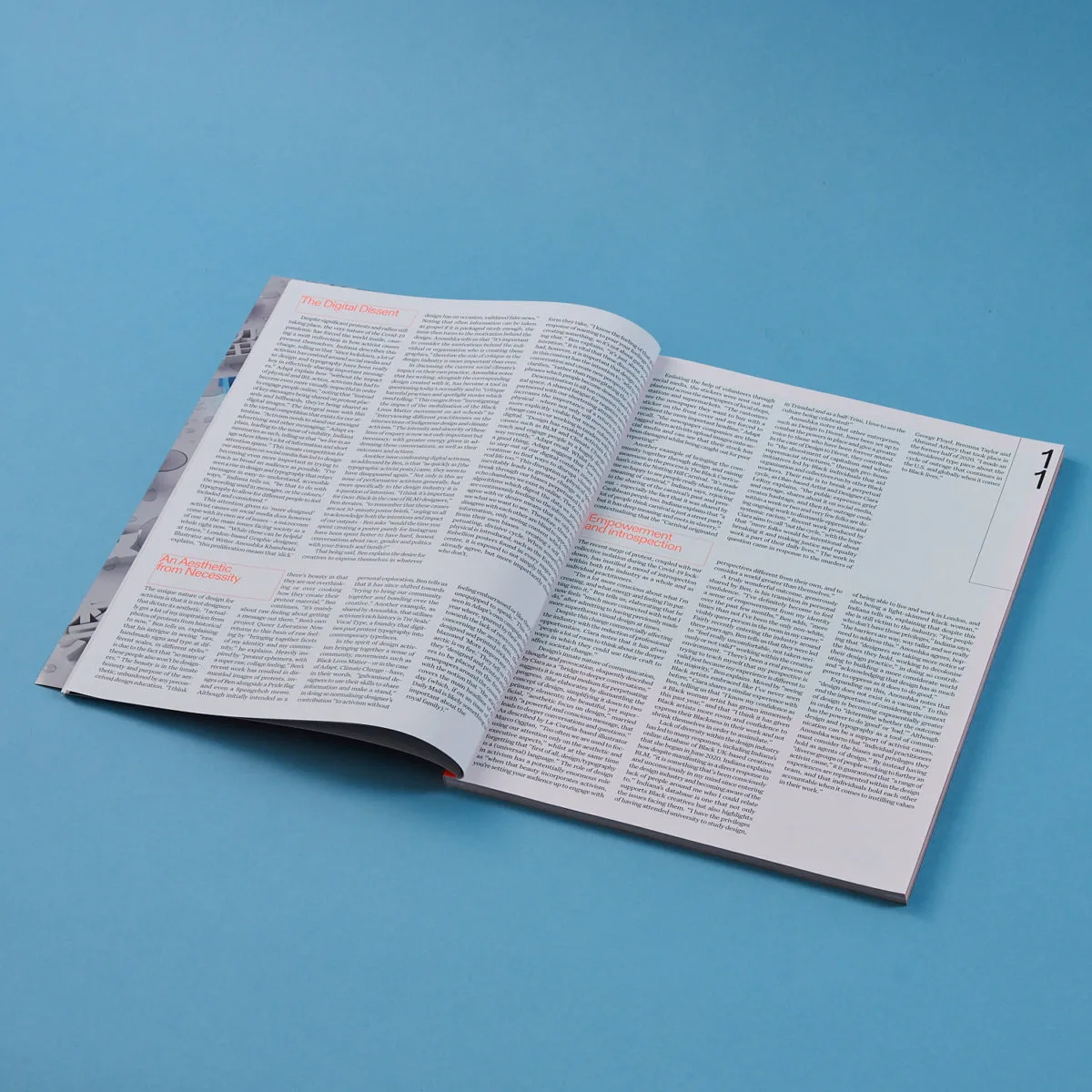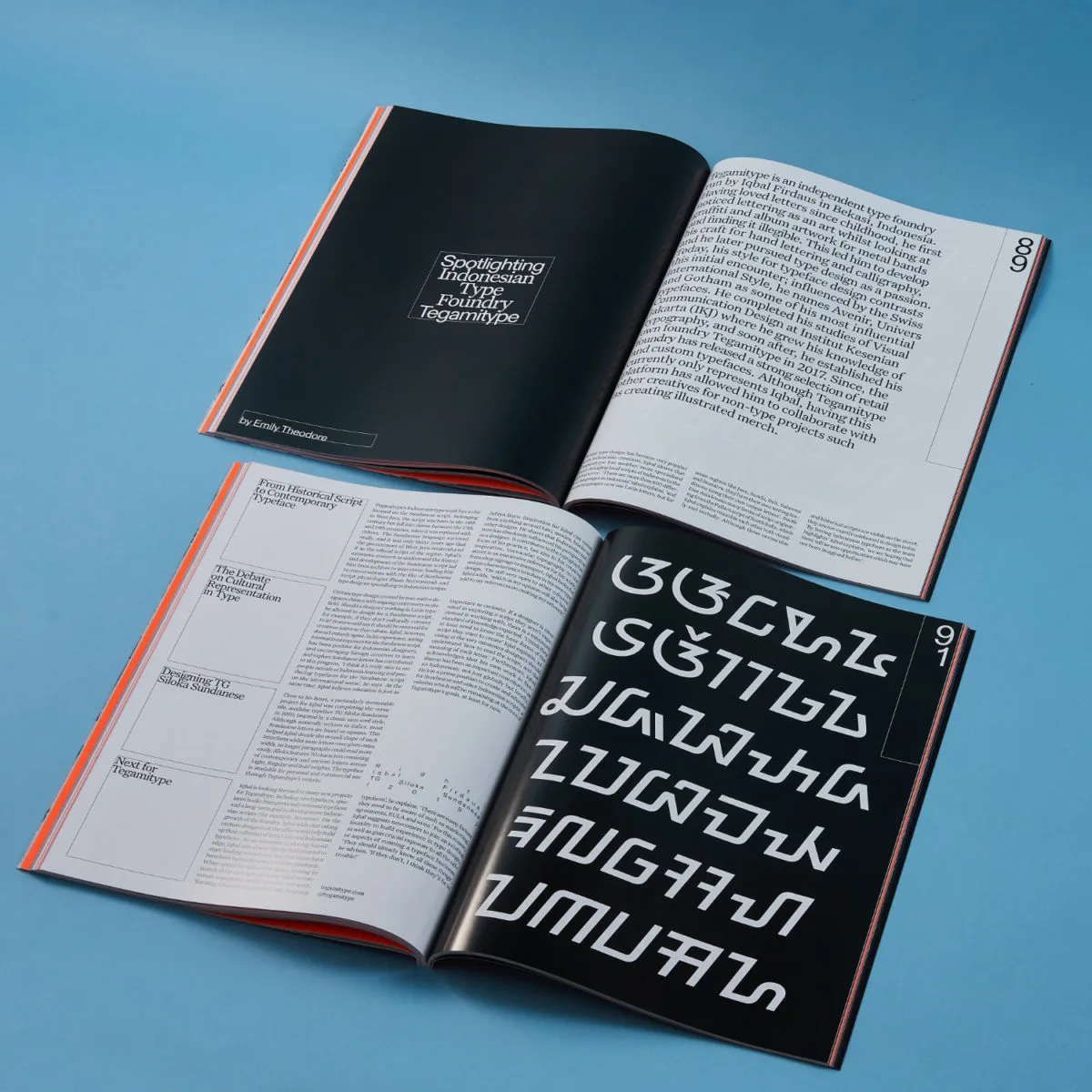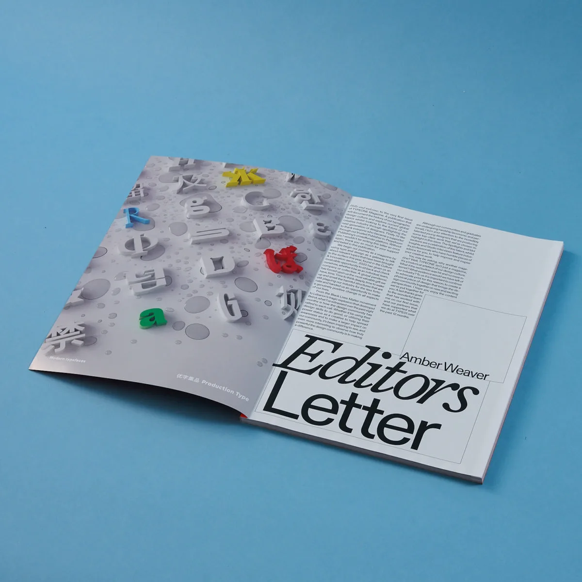 Printed in English in the UK by Pressision Creative Print & Finishers onto high-quality Fedrigoni Papers, TYPEONE Magazine was published by our friends over at People Of Print (In-Perpetuum). The stunningly high-quality finish is litho printed CYMK plus a special Pantone Spot colour (811C), meaning as an object, it feels really special.