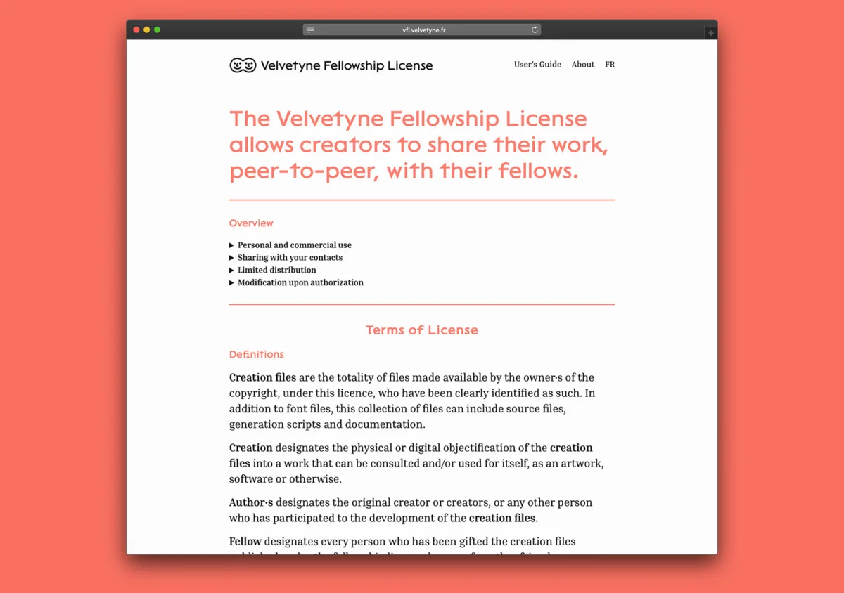 Can you give a little detail on how the Velvetyne Fellowship License will work in practice?