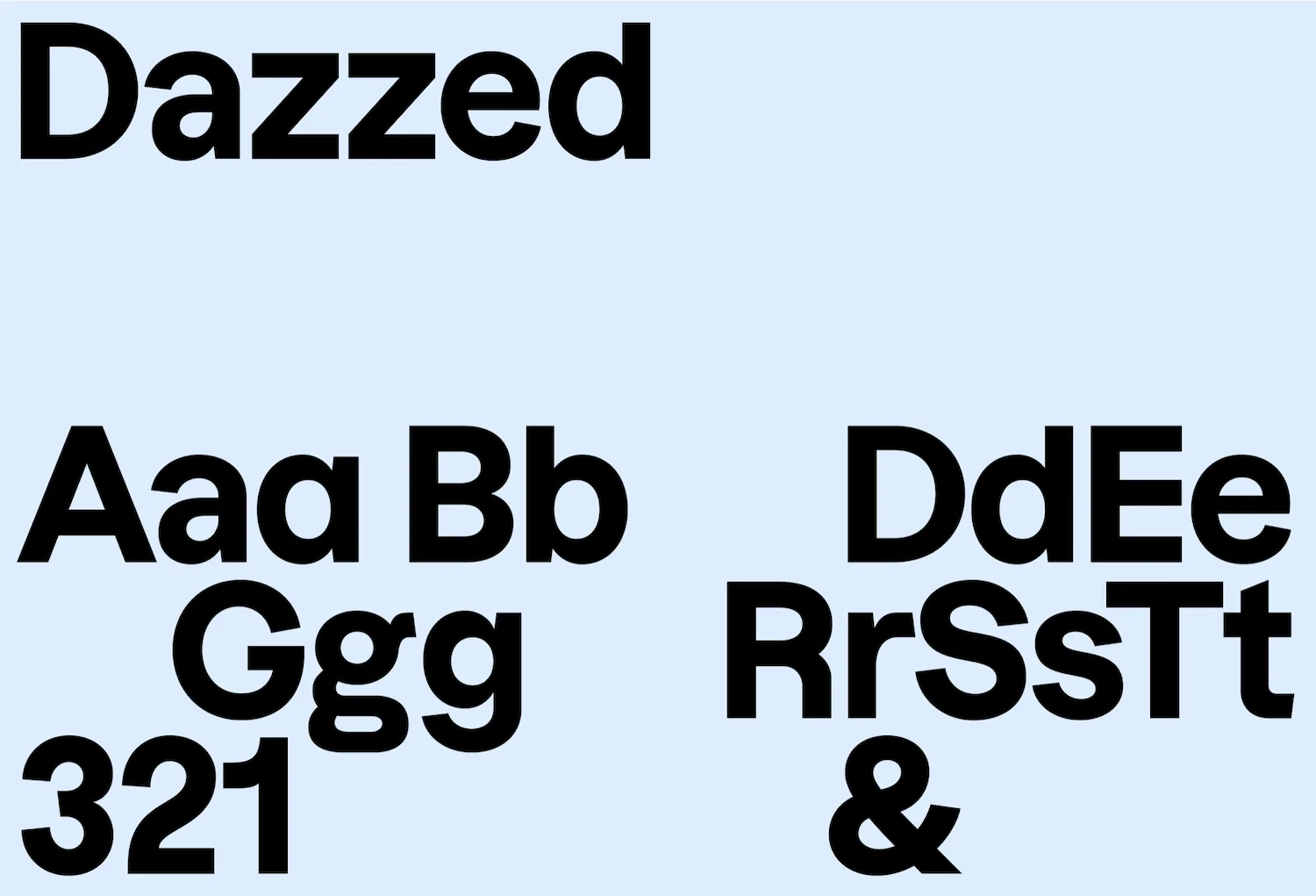 Displaay’s typefaces are vast and varied, but their overarching feel is sleek, minimal and functional – with a touch of the unexpected. A great place to start when getting a feel for Displaay’s output is Dazzed, a sans serif with narrow proportions and subtly unusual details. The reaching extension of finials (note the lower case ‘a’, ‘c’, and ‘e’) create an unusual distribution of tension and weight between the glyphs; giving Dazzled a unique kind of slant and a visible, vibrating energy between text.